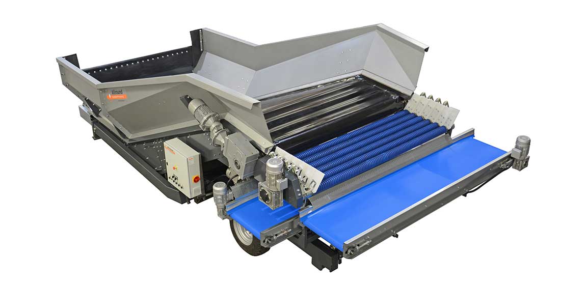 Bei Bedarf können Sie den gewünschten Annahmebunker mit einem Fingerrollensatz versehen lassen. Fingerrollensätze sind so konzipiert, dass sie lose Schalen und Schmutz entfernen. Das erhöht die Kapazität und verringert die Schmutzmenge in den anderen Maschinen. Dabei handelt es sich um die schonendste und effizienteste Art der Vorreinigung. Außerdem können Sie sich auch für einen Verstellbaren Walzensatz zur Vorreinigung als Zubehör für einen Aufnahmebunker entscheiden. Darüber hinaus können wir Ihnen im Zusammenhang mit den Annahmebunkern selbstverständlich auch bedarfsgerechte Förderbänder für die unterschiedlichen Erzeugnisse liefern.