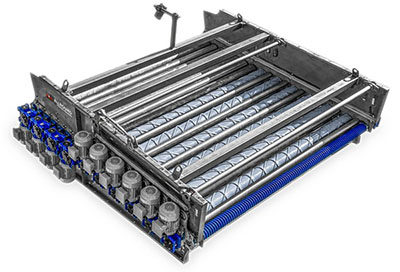 Roller set are for pre-cleaning and pre-grading the produce. The produce moves over the rollers, while dirt, skins, and undersized products fall between the rollers.
