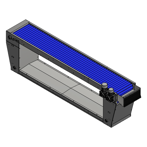Allround cabin inspection is used for manual sorting of the waste between the products. The produce is transported and rotated over rollers so the produce can be inspected.